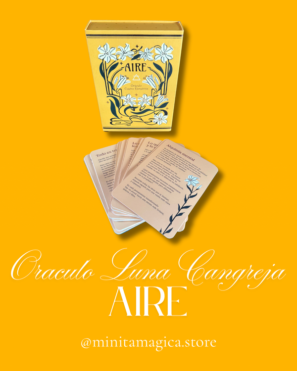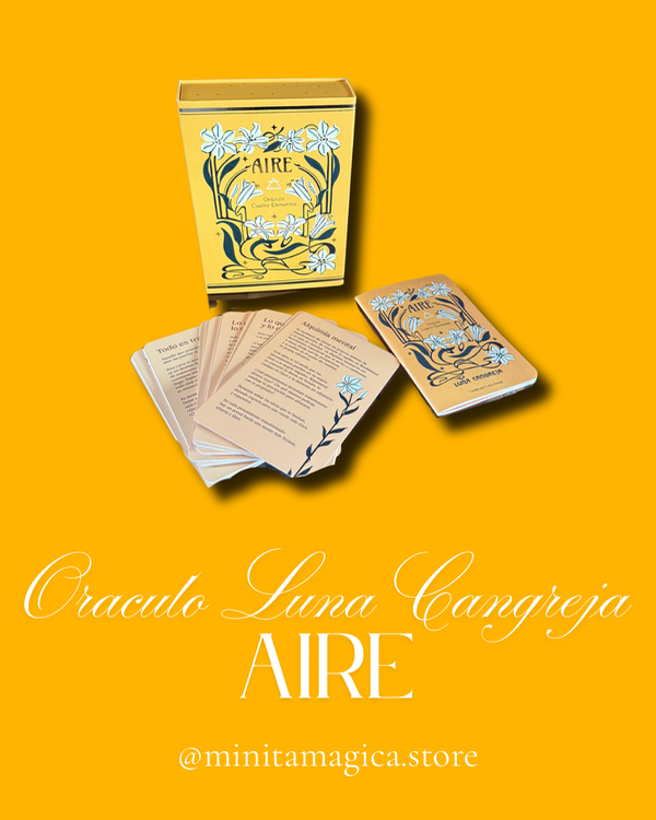 Contiene 30 cartas, y a través de ellas, descubrirás cómo el aire, con su movimiento y su capacidad de renovar el entorno, te conecta con nuevas ideas, perspectivas y conexiones. Abrí tu mente, fortalecé tu voz y permití que el aire te guíe hacia la evolución de tu ser